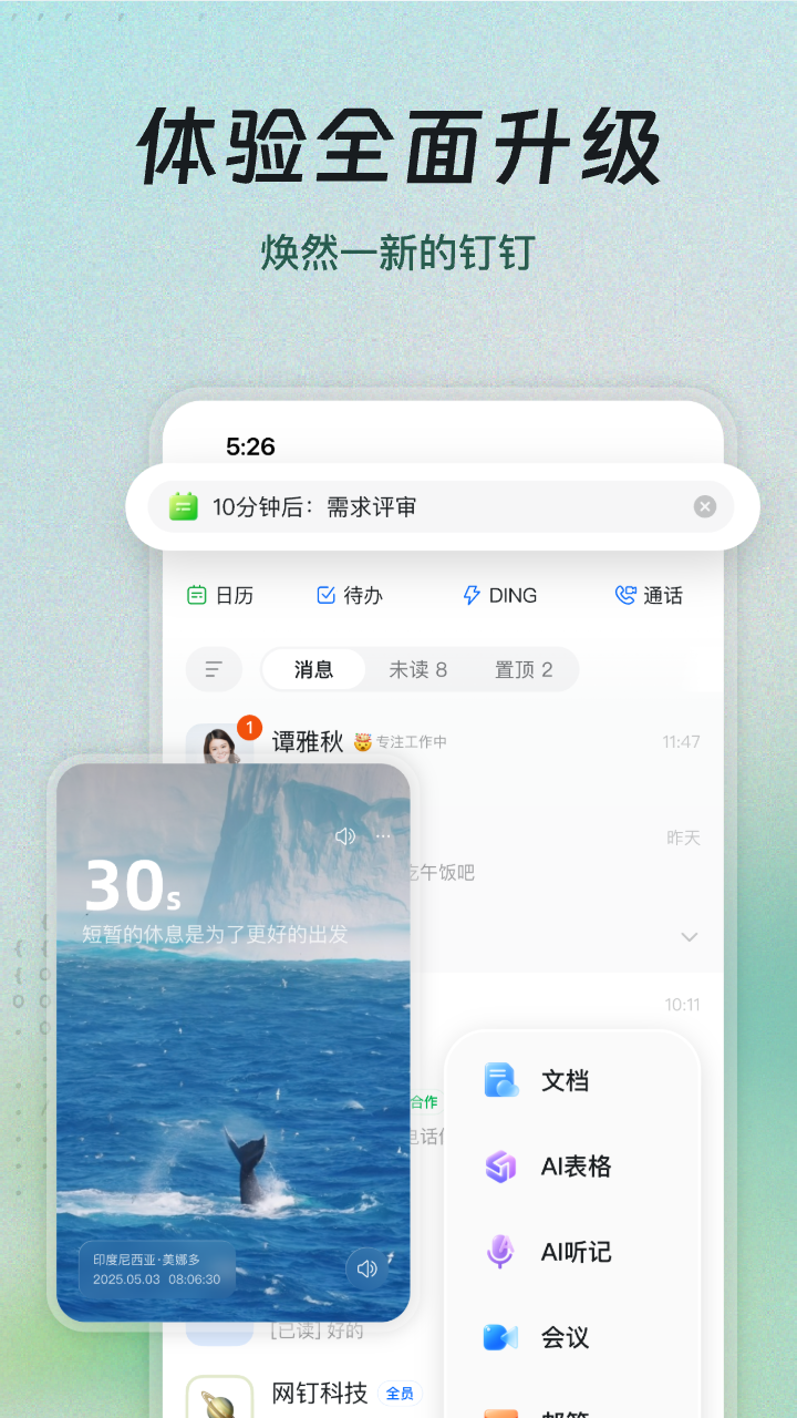 为企业及用户带来更智能、无需手动记实,全新的UI界面让各项功能一目了然,钉钉8.0鸿蒙版已正式上线,可以或许基于利用场景,深度融合场景化AI能力,更能帮你智能规划工做的优先级。智能识别并提示主要日程、待办和场景需求,好比正在你赶往会议室的上,沉构办公体验,避免脱漏主要需求。诚邀各行业用户配合体验智能办公的无限可能!正在钉钉十周年暨AI钉钉1.0新品发布会上。